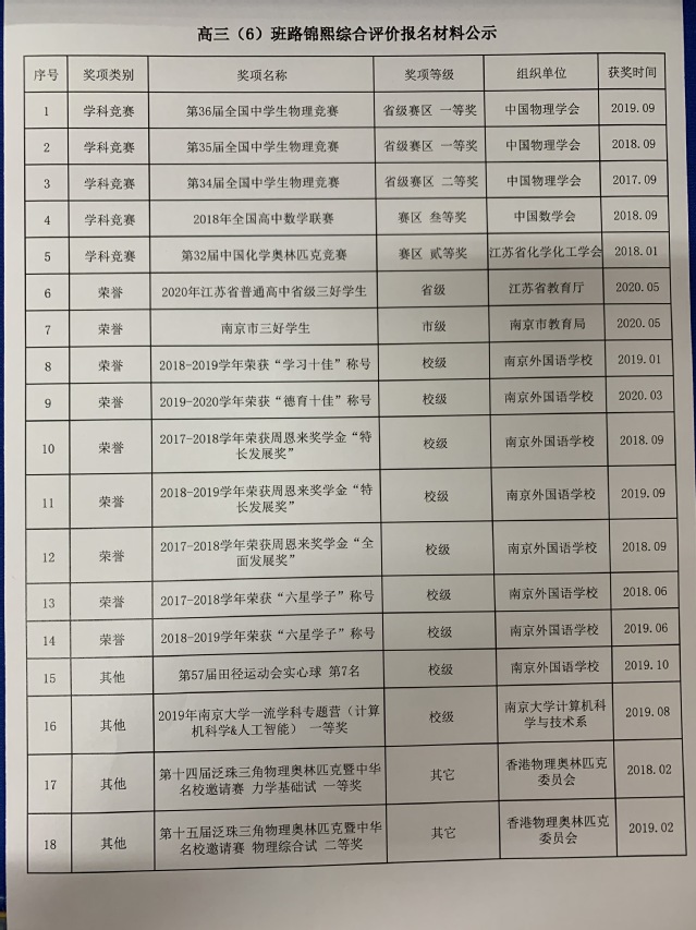 3.经本人申请,现将综合评价获奖情况申报材料公示如下: