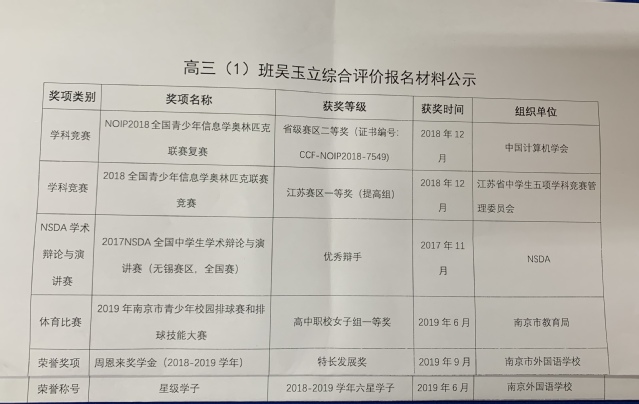 3.经本人申请,现将综合评价获奖情况申报材料公示如下: