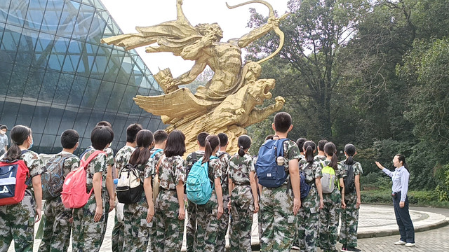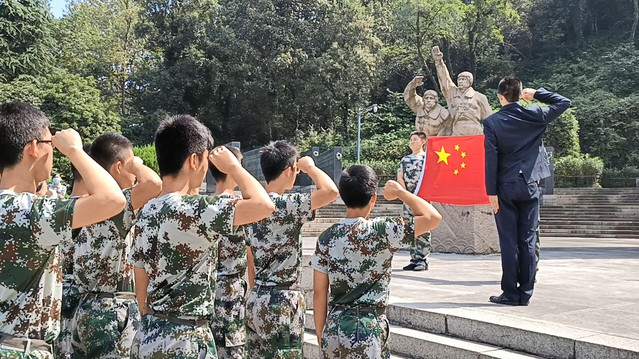 2020年九月一九日,为纪念抗战胜利75年,南京外国语学校国旗班部分成员和老师步行前往南京抗日航空烈士纪念馆参观,并在公墓举行宣誓仪式和祭奠仪式。