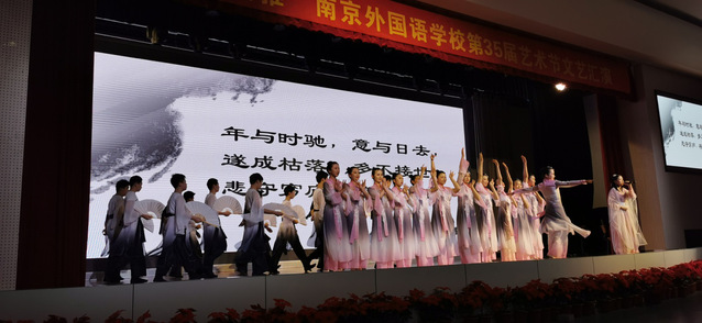 艺术节虽然已经落下了帷幕,但我们积极进取,团结向上,乐于奉献的精神将会延续下去。我们会以此为动力,在各个方面都敢于争先、勇于奉献、团结合作、全面发展,为了自己的美好未来和南外的美好明天继续努力!