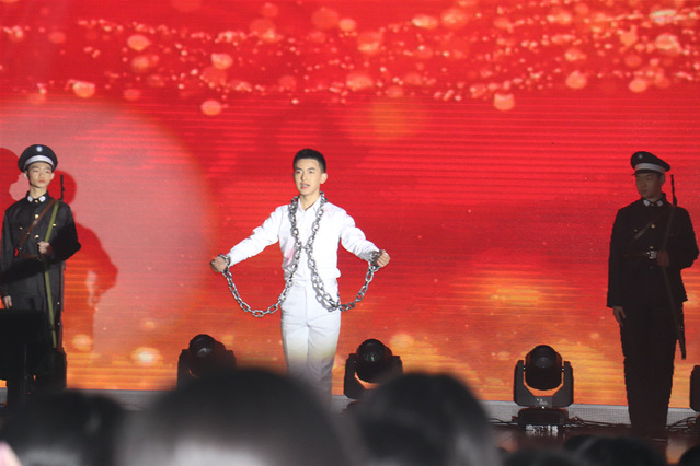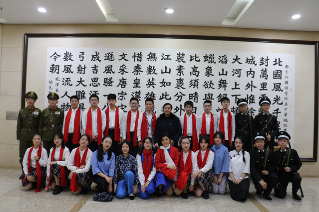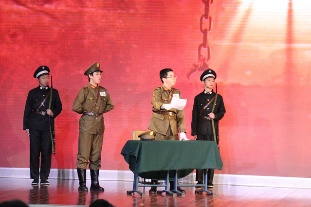 为了更好的烘托舞台效果,大家还一起动手查找了大量的图片和音乐资料,在老师的指导帮助下,对舞台音乐和背景大屏进行设计,收到了良好的效果,增强了舞台艺术感染力。随着大屏上红梅的徐徐绽放,在委婉动听的《红梅赞》音乐声中,全场观众都受到了强烈的震撼和灵魂洗礼——这就是英雄先烈们所具有的坚定理想信念、巨大人格力量和浩然革命正气!