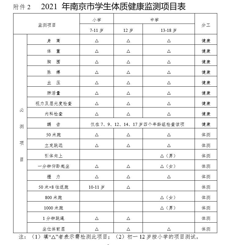 2.2021年南京市学生体质健康监测项目表