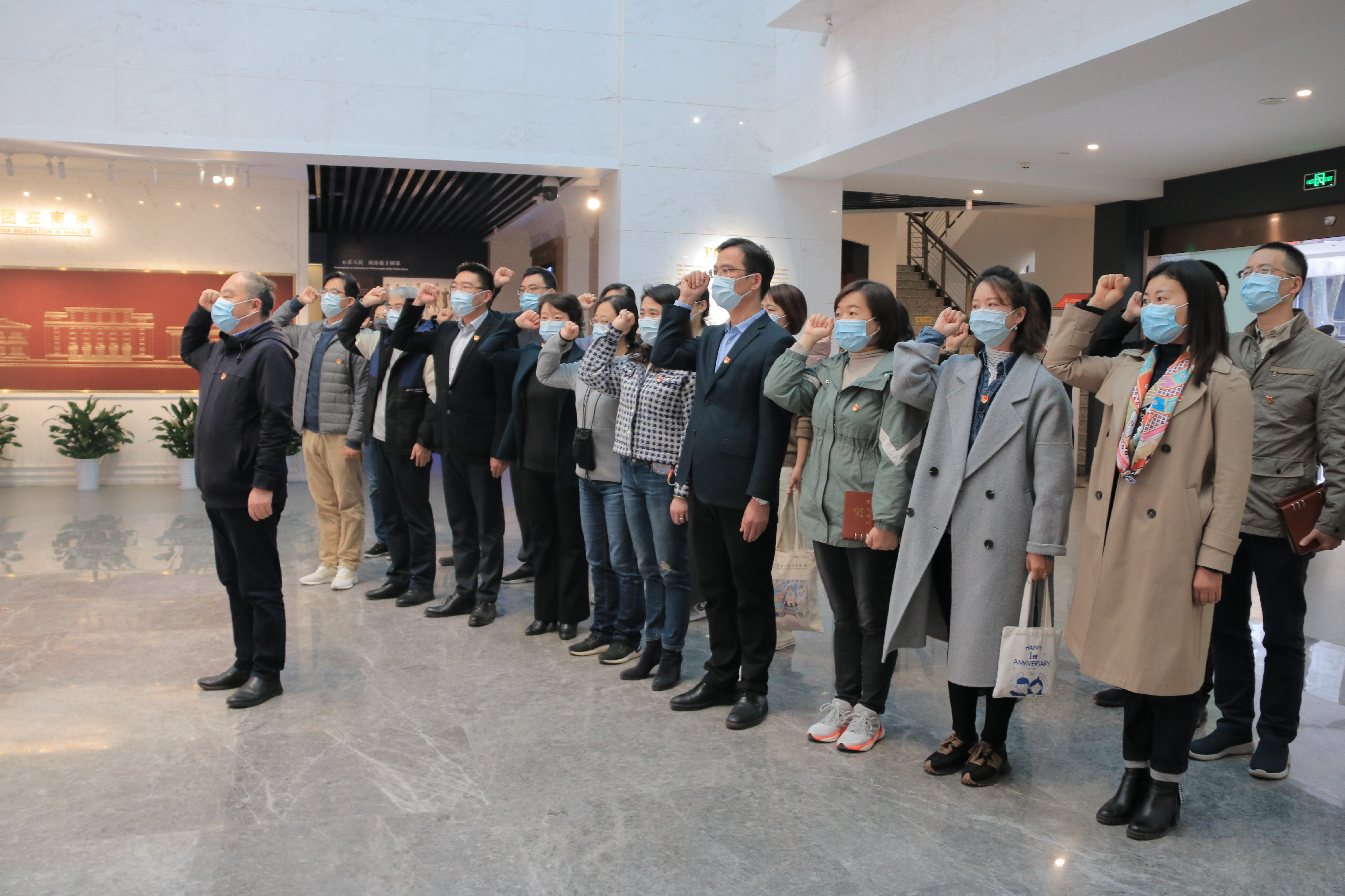 “我志愿加入中国共产党,拥护党的纲领,遵守党的章程,履行党员义务………”,在校长邹正同志领誓下,在鲜红的党旗前,全体党员同志举起右拳,面向党旗庄严宣誓,重温入党时对党和人民作出的庄严承诺。