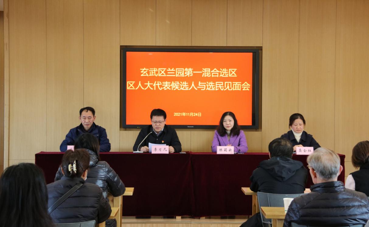 11月24日下午,兰园第一混合选区在我校召开区人大代表候选人与选民见面会。3名代表候选人及选民代表共60人参会。