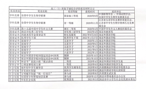 3.经本人申请,现将综合评价获奖情况申报材料公示如下: