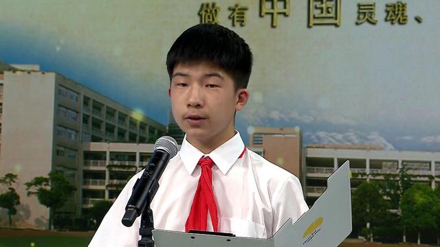 去年的这个时候,我们还是稚气未脱、天真烂漫的孩童,在踏入南外的校门后,我们心中有爱,眼里有光,变成了自己喜欢的模样。下面有请初中少先队代表初二(1)班的翁煜旻同学谈谈南外是如何帮助我们少年儿童茁壮成长的。