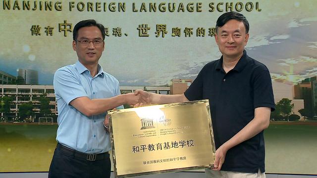 鉴于我校在和平文化上所取得的优异成绩,联合国教科文组织和平学教席将授予我校“和平教育基地学校”。
