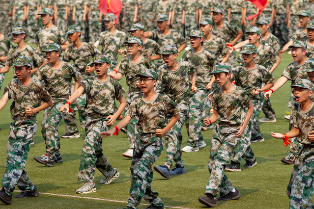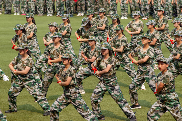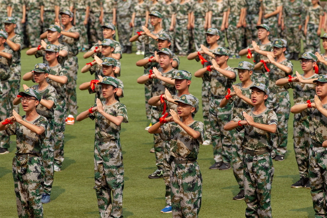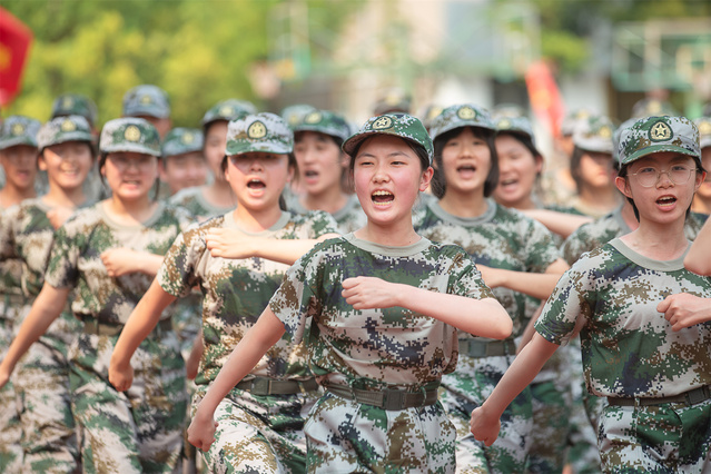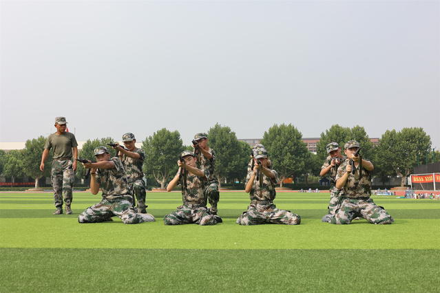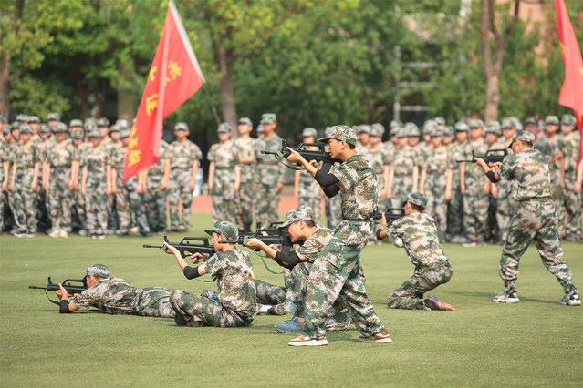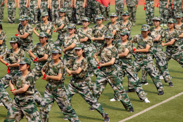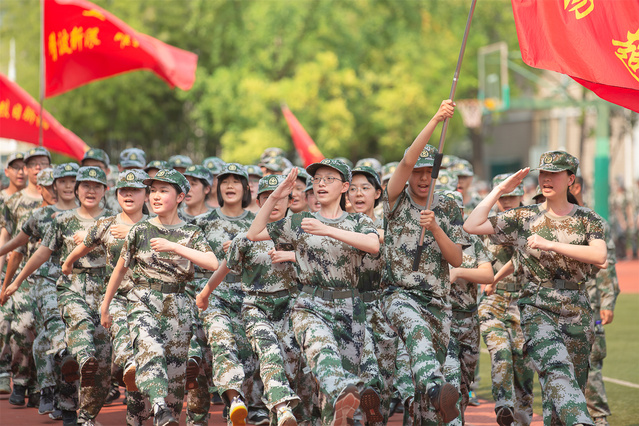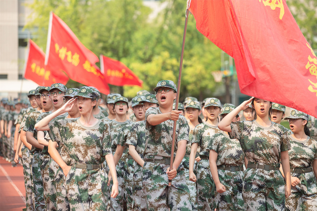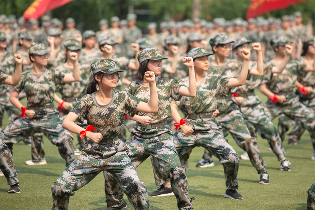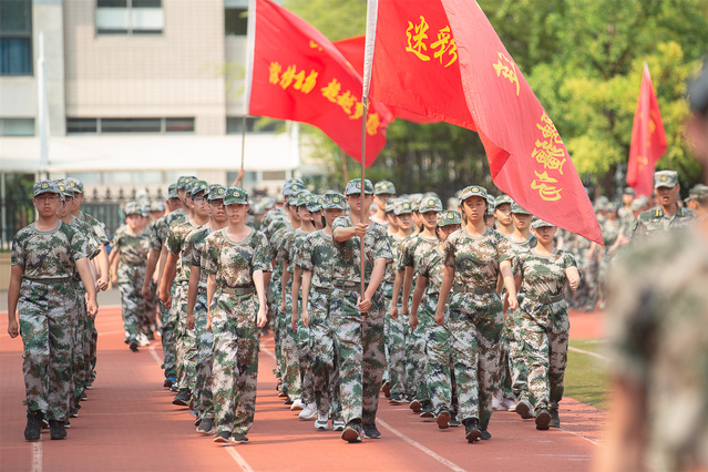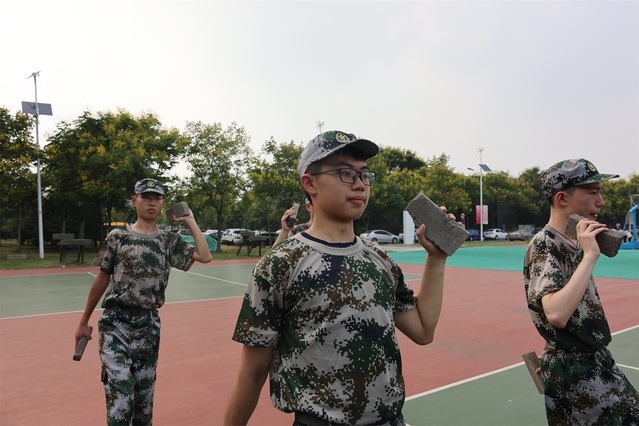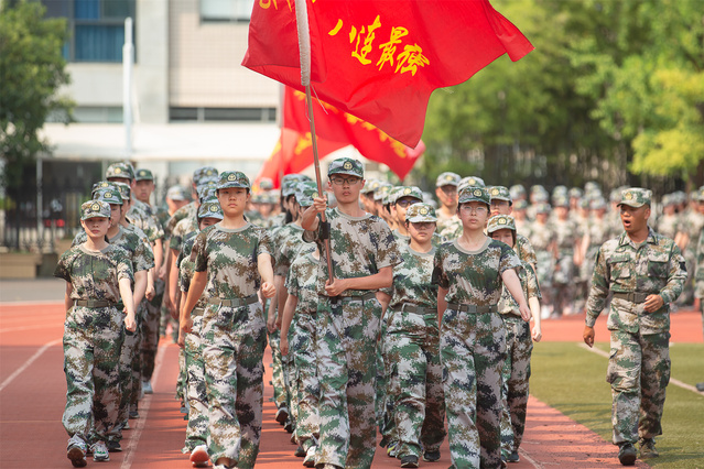 一到训练基地,同学们的身份就迅速从学生转变成了“军人”。“流血流汗不流泪,掉皮掉肉不掉队。”从早训到晚训,从站军姿到唱军歌,从队形演练到内务评比,同学们克服体能的不足和对天气的不适,严格要求自己,不仅在行动上,更在思想和精神上进行刻苦的训练,正所谓千琢璞为玉,百炼铁成钢。