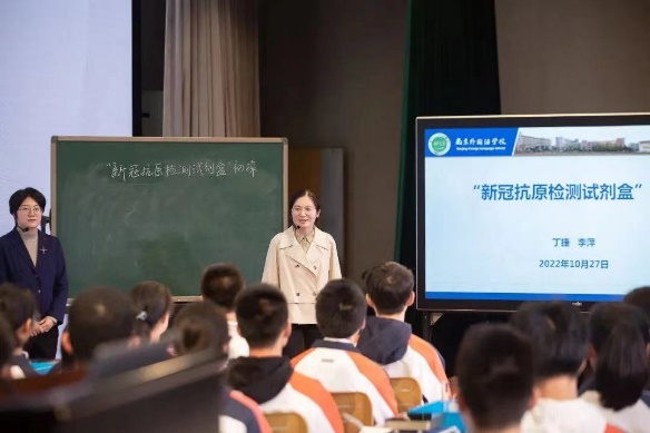 2022年10月,在江苏省区域基础教育课程教学改革展示活动(南外分会场)中,化学组丁捷老师和生物组李萍老师现场共同执教了一节项目式学习研究课《新冠抗原检测试剂盒初探》。莅临现场的教育主管部门领导和兄弟学校老师们对这样的跨学科课堂教学给予高度赞赏。