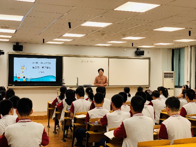 2022年10月,陈阳老师开设新教师汇报课《水的净化》,南京市化学教研员杨剑春老师应邀来校听课指导。课后,杨剑春老师、刘前树书记、周弋副校长与化学组老师们就本节课和中考评价等各方面展开研讨,大家一直认为陈阳老师的课教学目标明确、逻辑严密、内容充实。