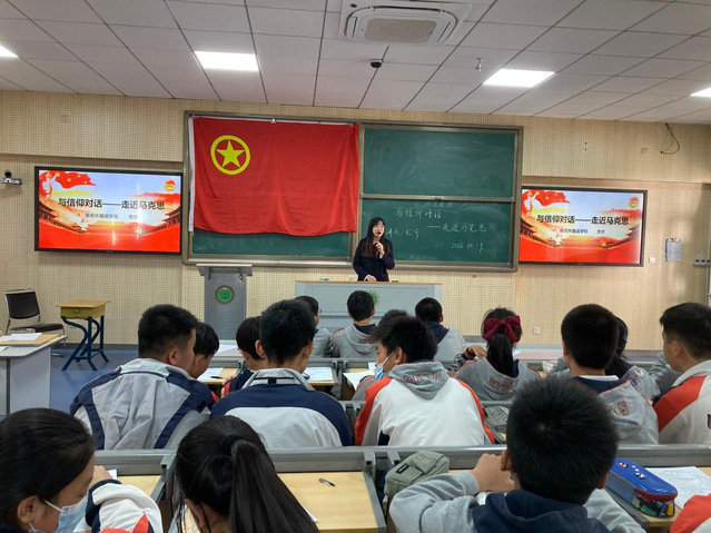 大队辅导员尤宁老师介绍了马克思生平、马克思主义及《共产党宣言》。