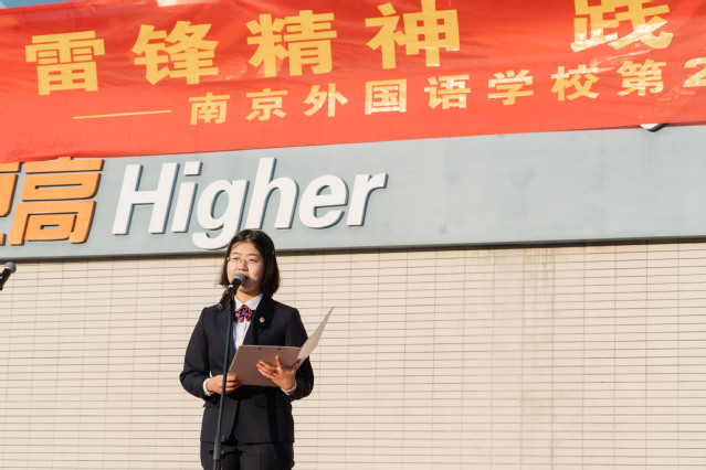 纪涵予:今天,我们迎来了南京外国语学校第21个爱心月,本次爱心月活动主题为“弘扬雷锋精神践行青春使命”。下面,有请校团委委员胡容晓带领我们一起重温雷锋同志平凡又不凡的一生。
