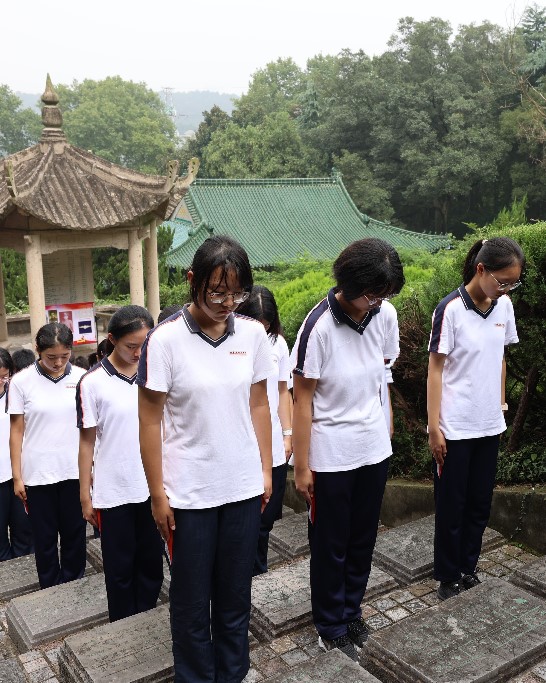 2023年9月29日,第十个烈士纪念日前夕,南京外国语学校2023级高一国旗班的同学及带队老师共同从北京东路校区步行前往抗日航空烈士公墓,举行宣誓仪式和默哀式,感悟英烈爱国献身精神,凝聚建设国防思想共识,培育青年团结奋进力量。