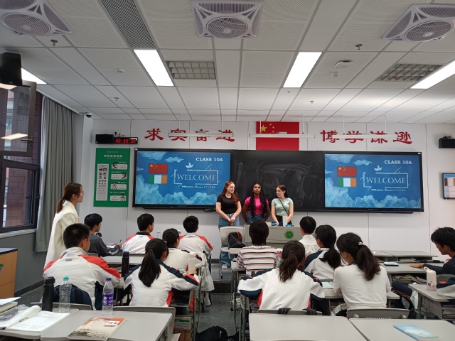 10月30日上午南京市教育局卢普新副局长、南京市教育局国际处俞峻处长、战全庆副处长、南京外国语学校林沁副校长与爱尔兰来访师生进行了座谈。卢局长对爱尔兰来访师生一行表示热烈欢迎,希望双方加强青少年之间的交流活动并祝愿来访师生此行收获满满。