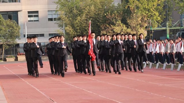 2022年9月,38名同学因在军训中表现优秀而被选为光荣的国旗护卫手。至此,一群朝气蓬勃的的青年学生们开始承担起庄严的护旗使命,守护心中最崇高的信仰。每个队员都克服困难,坚定执着,用实际行动兑现了对国旗的誓言。从操场走到升旗台那短短的几十米,凝聚的是无数次力求完美的表现,展现的是刻苦训练的成果,踏过的是严寒酷暑下也不曾停下的步伐。