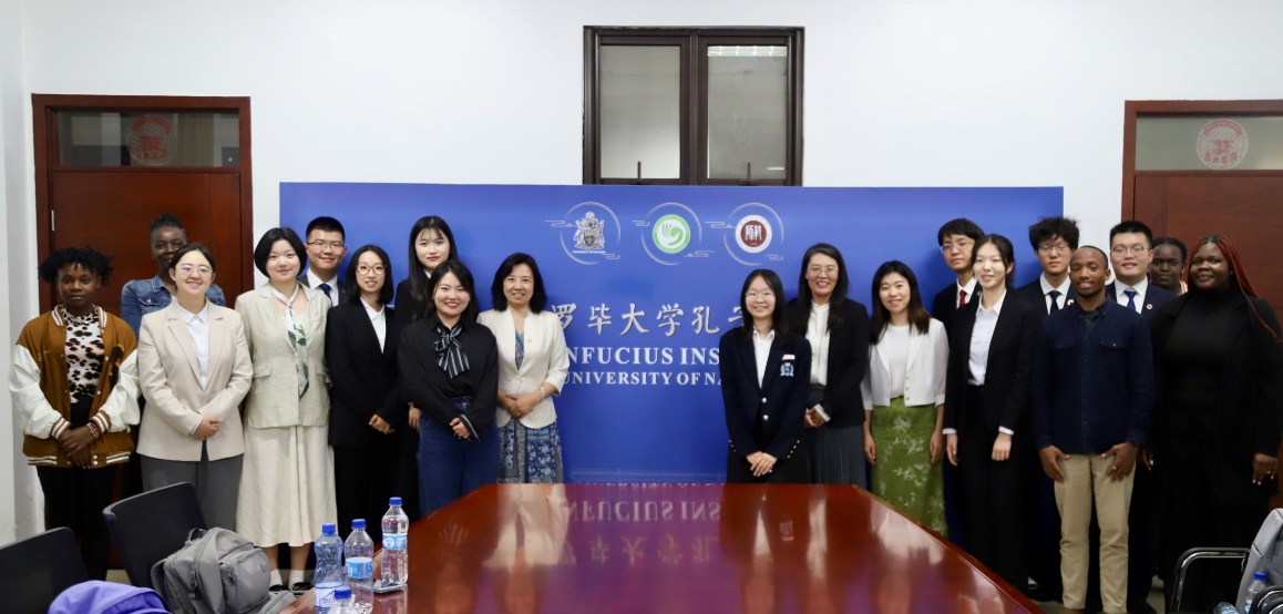 访学团在内罗毕大学孔子学院与师生交流(右侧左一为余越)