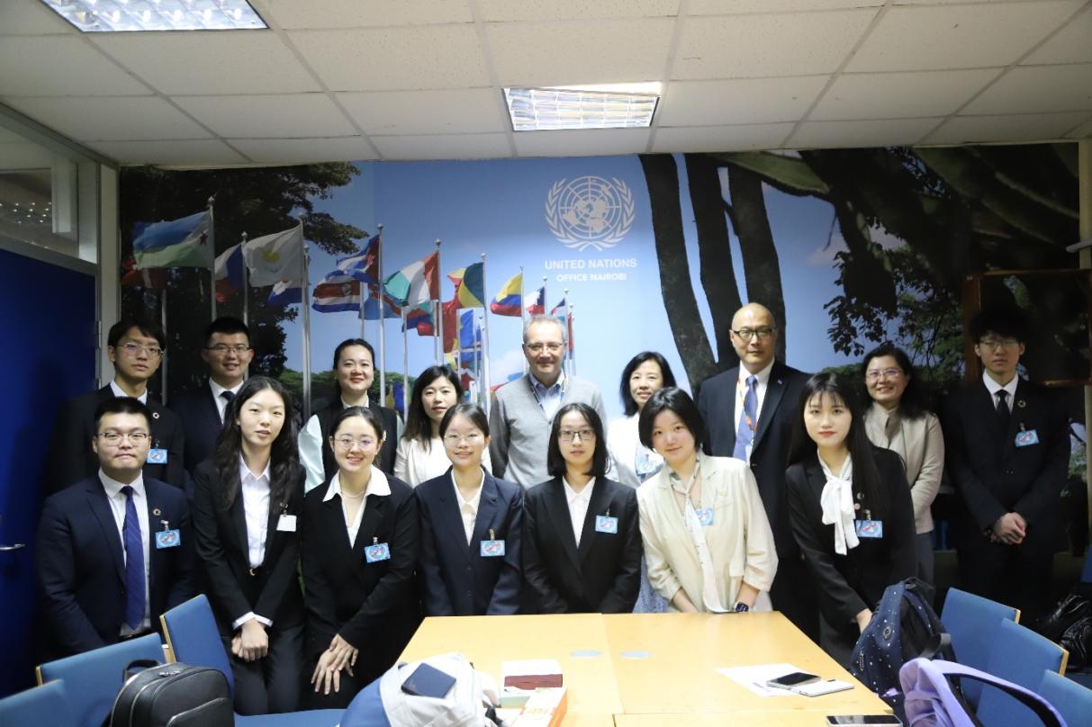 访学团在联合国驻内罗毕办事处会议事务司进行访学(前排左四为余越)